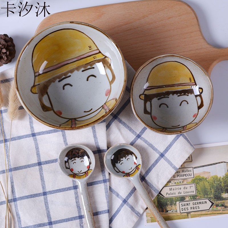 创意日式情侣碗两个组合装碗款一对2人可爱卡通陶瓷吃饭碗一对热门设计联盟服务商